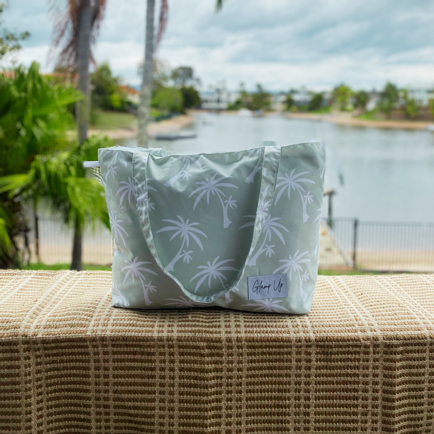 Upgrade your outdoor routine with the Minty Palm Tote Bag – where glamour meets practicality. Add it to your cart now and redefine your glamping experience with style. Don't miss out on this limited stock – pre-order your favourite colour today!